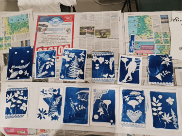 Photogrammes florales et créations uniques en cyanotype.