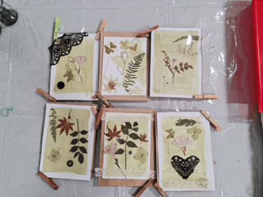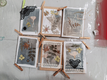 Je fournirai des plantes et des fleurs issues de mon herbier personnel, mais vous êtes également invités à apporter vos propres végétaux, ainsi que de la dentelle ou d'autres objets plats tels que des plumes ou du papier de diverses épaisseurs.