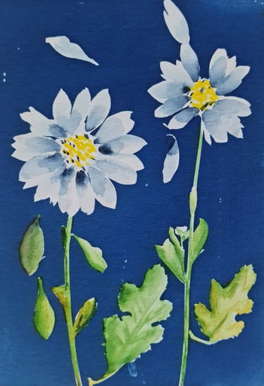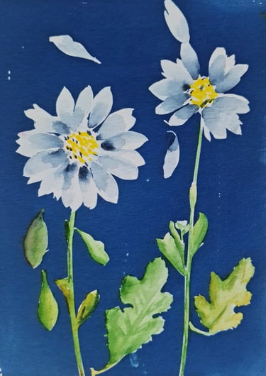 Découvrez quelques unes de mes œuvres artistiques, ornés de motifs floraux imprimés ou grâce à un négatif photographique et ensuite brodé à la main ou retouché avec de l'aquarelle ou de l'encre. Certaines sont disponibles à la vente